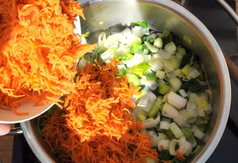 : carottes râpées à ajouter aux poireaux, une fois fondus, après le 2nd point ci-dessus.